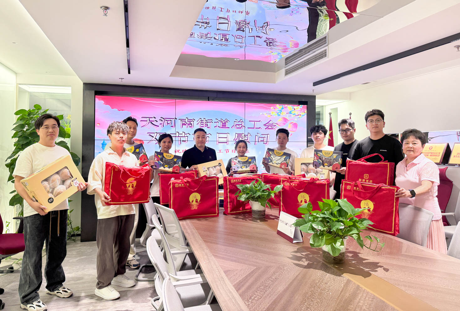 与此同时,天河南街道总工会亦送来丰厚应节物品与美好祝福。此举不仅予职工物质支持,更予精神慰藉,让企业更加坚定与总工会携手共建,共绘“职工得实惠、企业促发展”的崭新篇章。